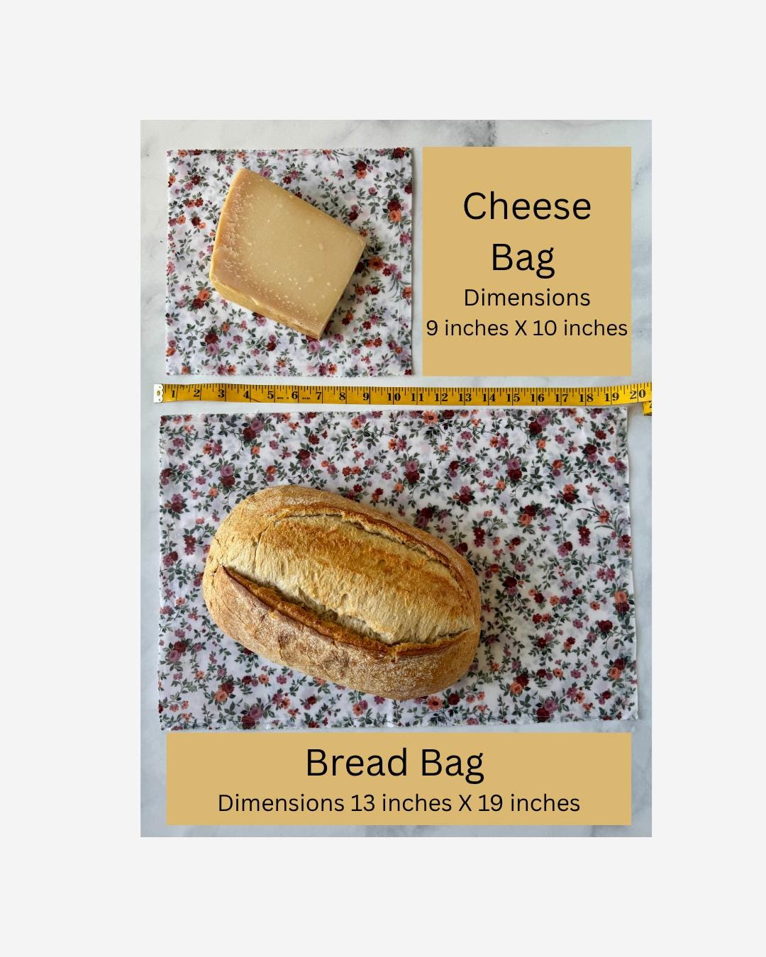 ****Photos may show serving ideas, but only the beeswax cheese bag is included in this listing. Accessories and food items are for styling purposes only. Bread Bags are sold in separate listing.